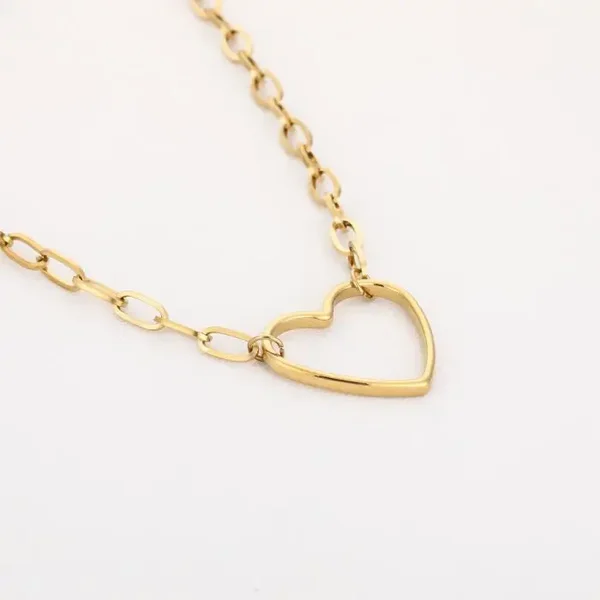 Stralend, stijlvol en tijdloos — deze goudkleurige ketting met open hart hanger is een must-have voor elke sieradenliefhebber. De elegante schakelketting en subtiele hartvorm geven jouw outfit een romantische en moderne touch.
