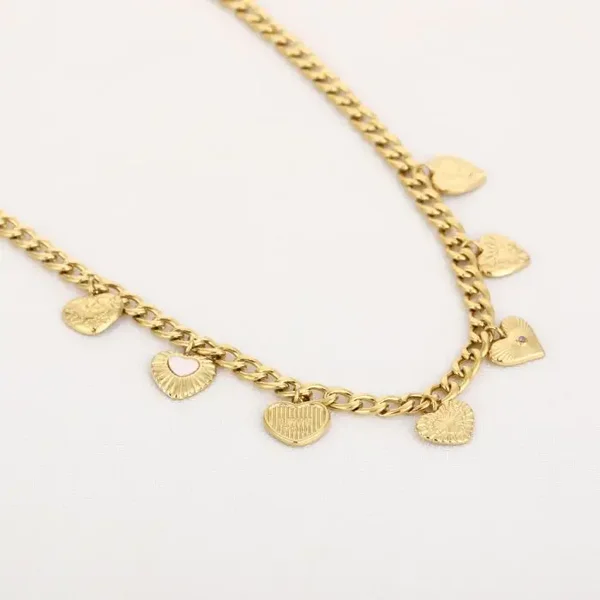 Gouden stainless steel ketting met bedels.
